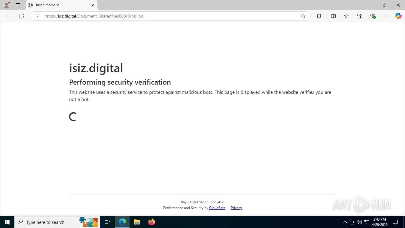 The QR code resolved to a domain controlled by the attacker. Before loading the actual phishing page, the site presented a Cloudflare “Performing security verification” page. Cloudflare is a legitimate content‑delivery and security service, but threat actors increasingly hide their infrastructure behind services like this to: