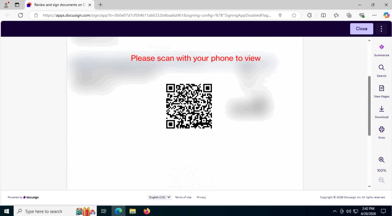 The attacker’s goal here is simple: move the victim from a relatively well‑protected corporate workstation to a mobile device, where URL filtering, secure DNS, EDR, and other enterprise controls are often weaker or completely absent. Security researchers have observed that QR‑code‑based phishing (“quishing”) is increasingly used for exactly this reason. DocuSign itself warns that QR codes are being abused in phishing and recommends extra scrutiny before scanning any such code from an email.